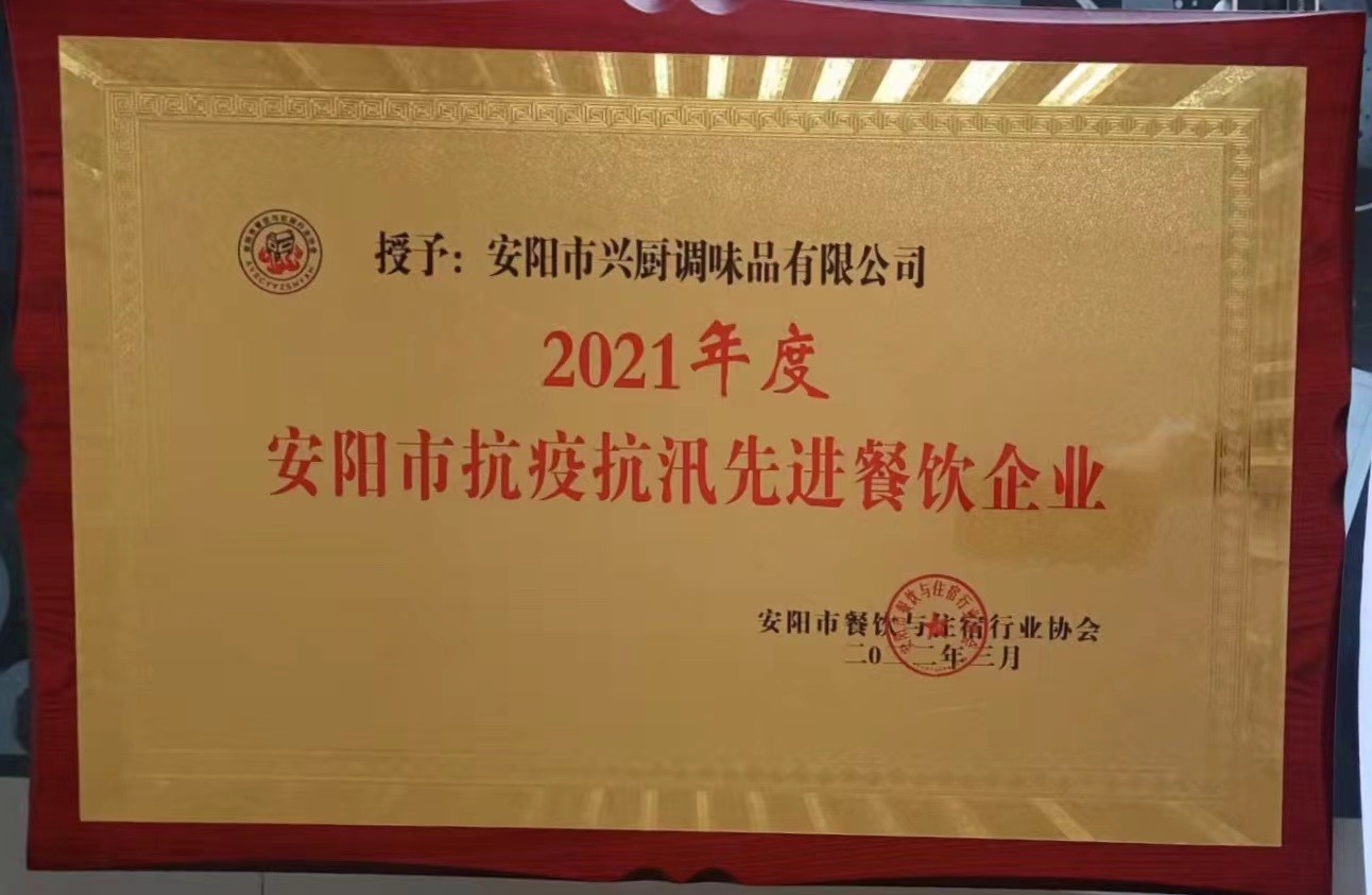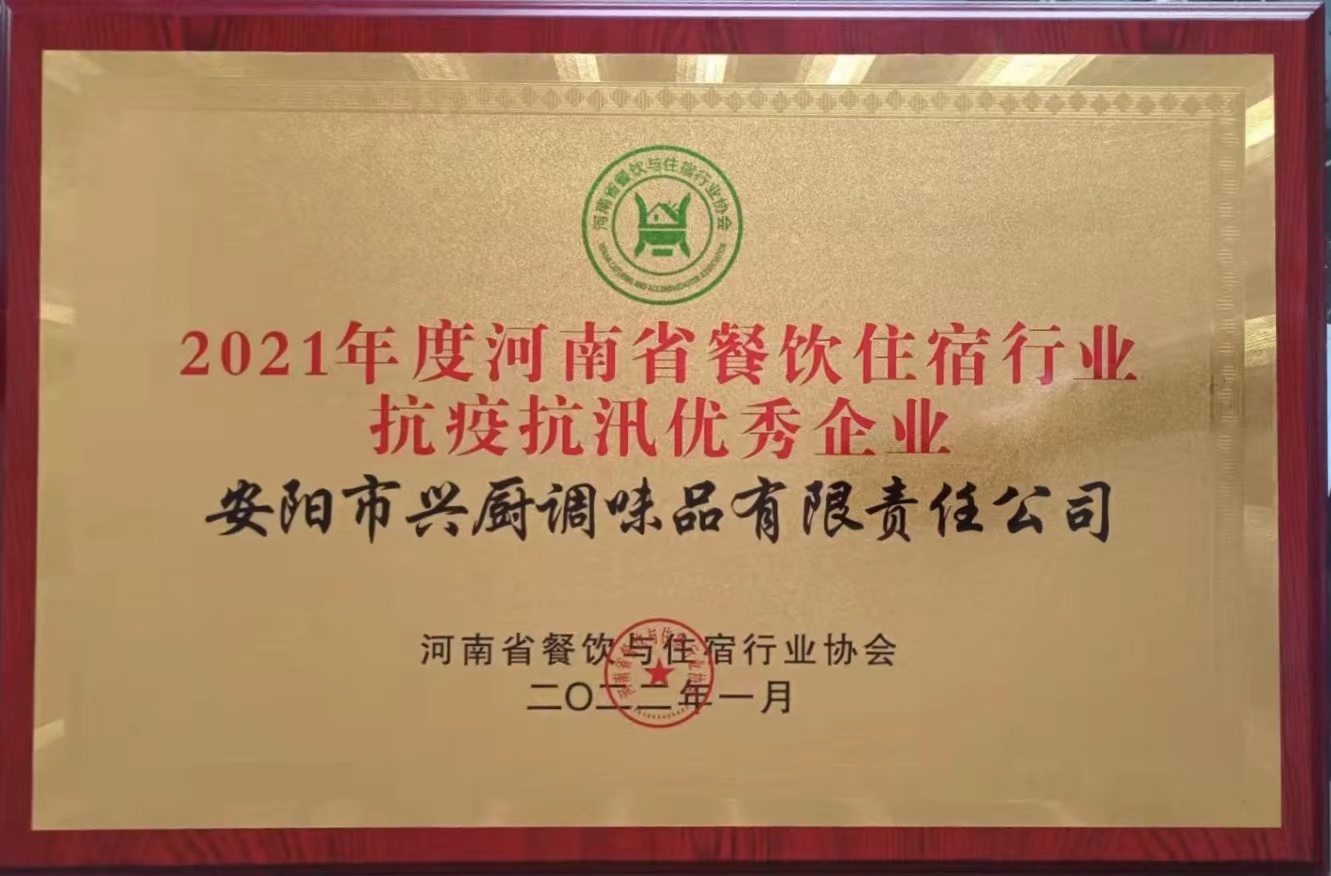 ? ? ? ? ?2022年3月9日,我司獲得"2021年度河南省餐飲住宿行業抗疫抗汛優 秀企業"稱號