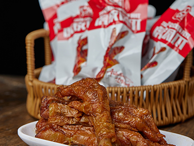 ? ? ? ? 虎皮雞爪廠家介紹雞爪多皮、筋,膠質大,常用于煮湯,也宜于鹵、醬。如:鹵雞爪、醬雞爪。質地肥厚的還可煮熟后脫骨拌食,如:椒麻雞掌、拆骨掌翅,皆脆嫩可口。虎皮雞爪的原材料雞爪要求肉皮色澤白亮并且富有光澤,無殘留黃色硬皮;雞爪質地緊密,富有彈性,表面微干或略顯濕潤且不黏手。如果雞爪色澤暗淡無光,表面發黏,則表明雞爪存放時間過久,不宜選購。虎皮雞爪廠家介紹雞爪趁新鮮制作成菜,一般放冰箱內可保鮮1-2天不變質。如果需要長期保存生的雞爪,可把雞爪洗凈,在表面涂抹上少許黃酒,用保鮮膜包裹起來,放入冰箱冷凍室內冷凍保存,食用時取出后自然化凍即可。