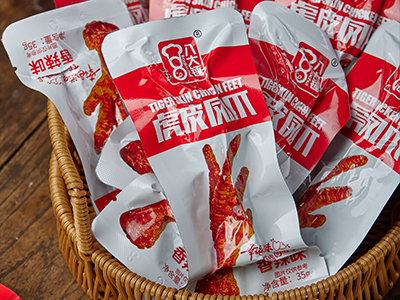 ? ? ? ? 虎皮麻辣雞爪廠家介紹雞爪又名雞掌、鳳爪、鳳足,雞爪的營養價值頗高,含有豐富的鈣質及膠原蛋白,適當的吃雞爪是有好處的,但是吃虎皮麻辣雞爪一次也不要太多,要不然會上火。雖然每個人體質不一樣,吃雞爪的數目也不一樣。但是100克雞爪的熱量為254千卡,可人體每天攝入的熱量才為2200千卡,雞爪吃多導致熱量攝入過多,熱量不能及時消耗,就會轉變為脂肪。另外某些不法商販在雞飼料中添加激素,導致雞爪中激素殘留,也會影響人體健康。因此,想要快樂吃雞爪的話,一定要選擇正規廠家生產的合格產品,我們是虎皮麻辣雞爪廠家,產品美味健康,深受顧客喜歡,歡迎您隨時致電咨詢!